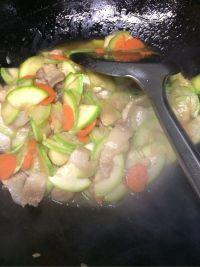 接着,在锅中留少许油,放入切好的角瓜丝,翻炒至角瓜丝微微变软。这时,将炒好的肉丝重新倒入锅中,加入适量的盐、生抽、鸡精,快速翻炒均匀。